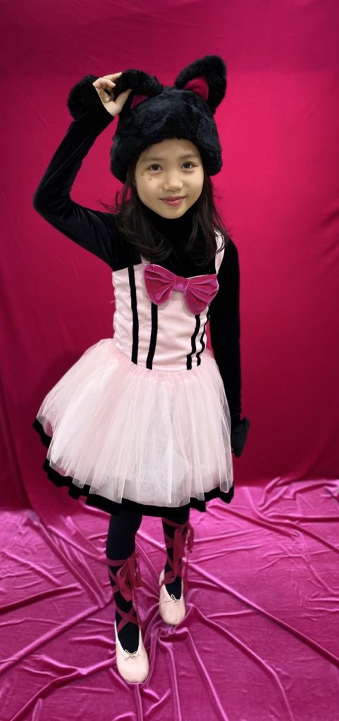 今回は「黒猫バレリーナ」の衣装でかわいいチュチュの付いたドレスと