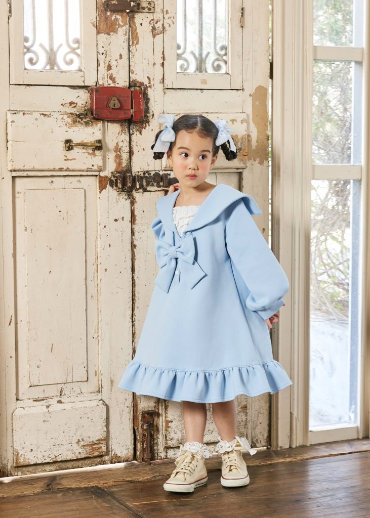 大きなセーラーカラーに取り外しできるリボンもポイント♡