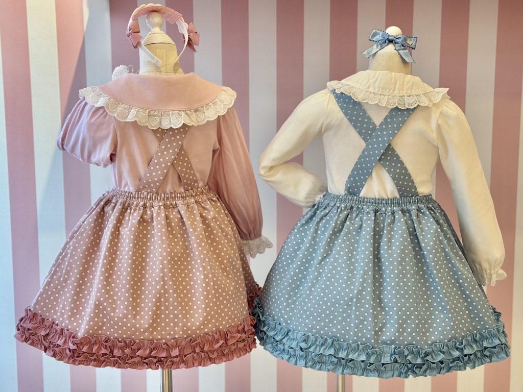 ドット&ハートフリルジャンパースカートとご姉妹コーディネートもおすすめです![]()