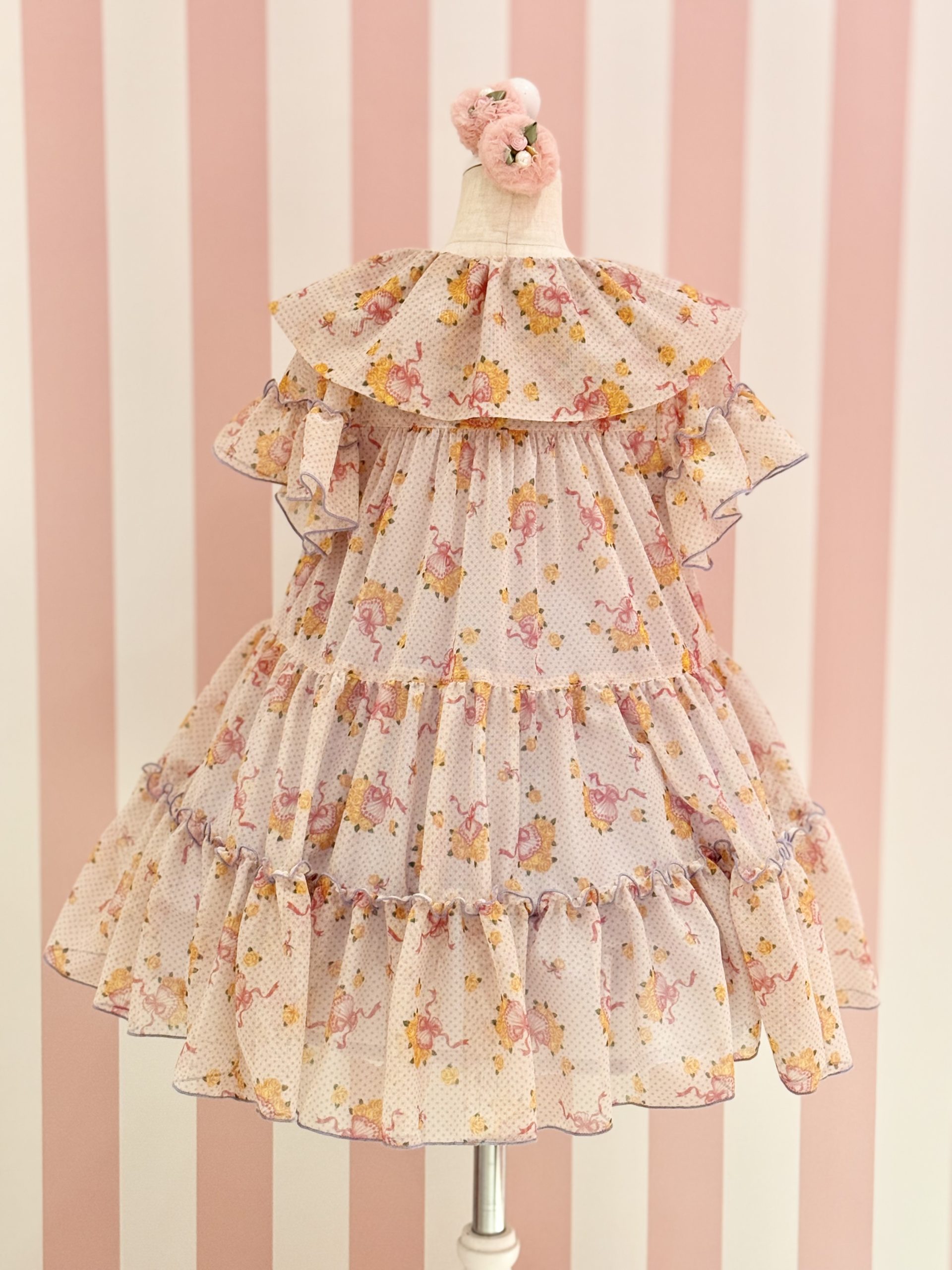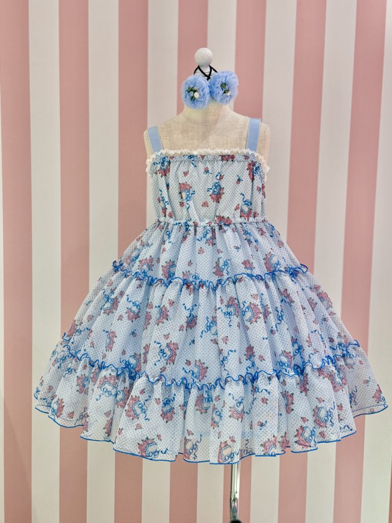ティアードスカートにはカラーに合わせてパイピングの縁取りを施しています![]()