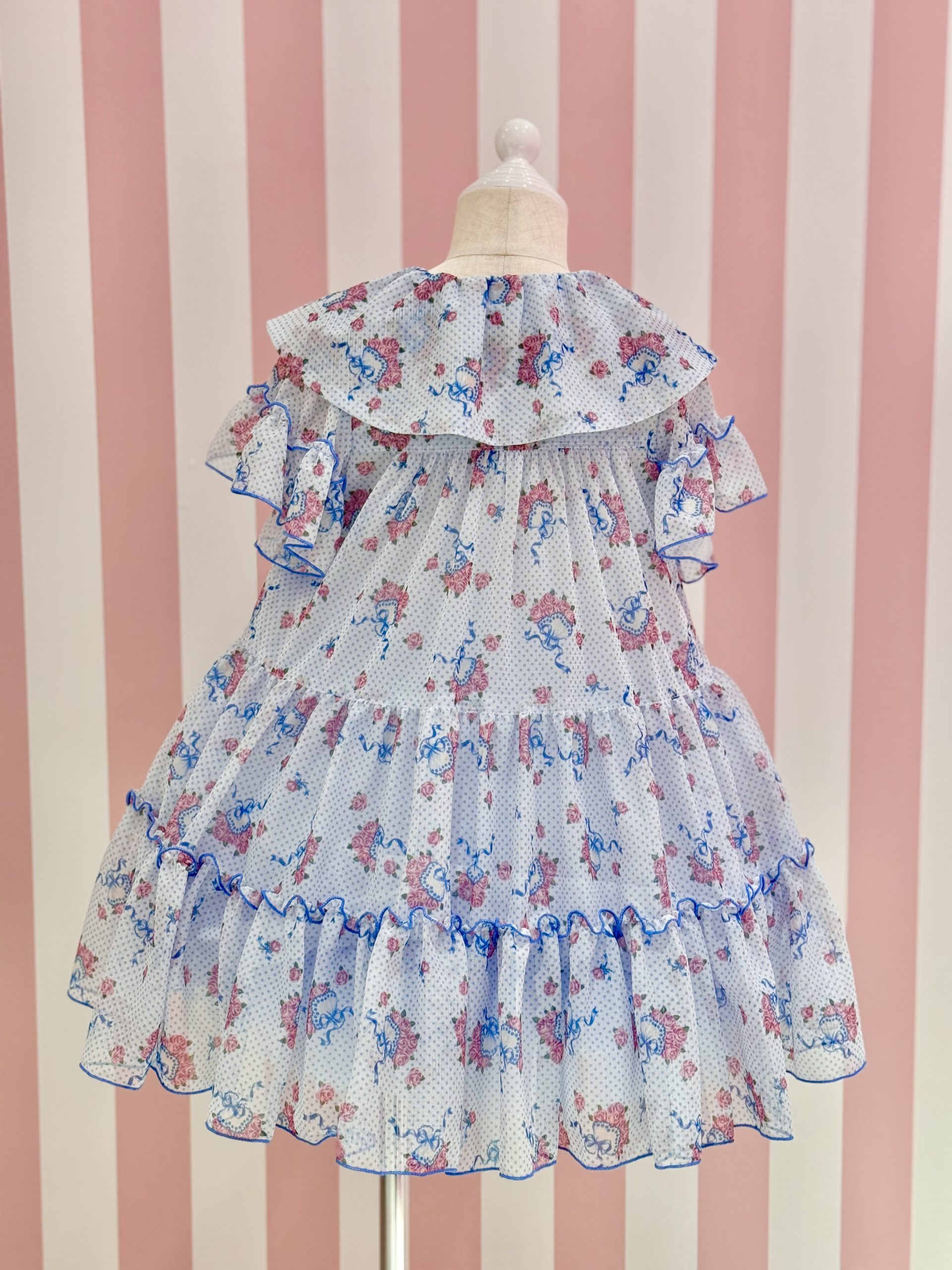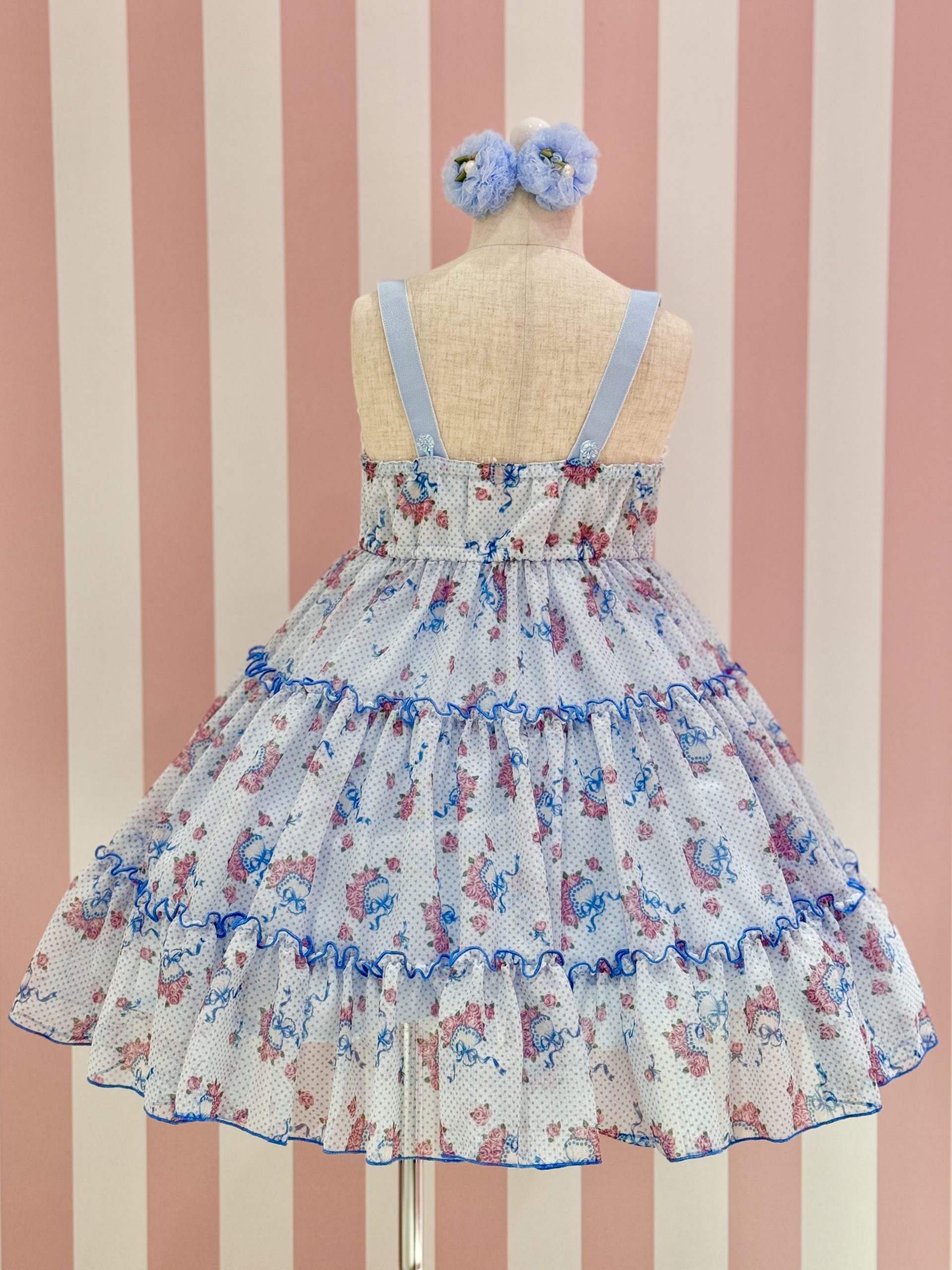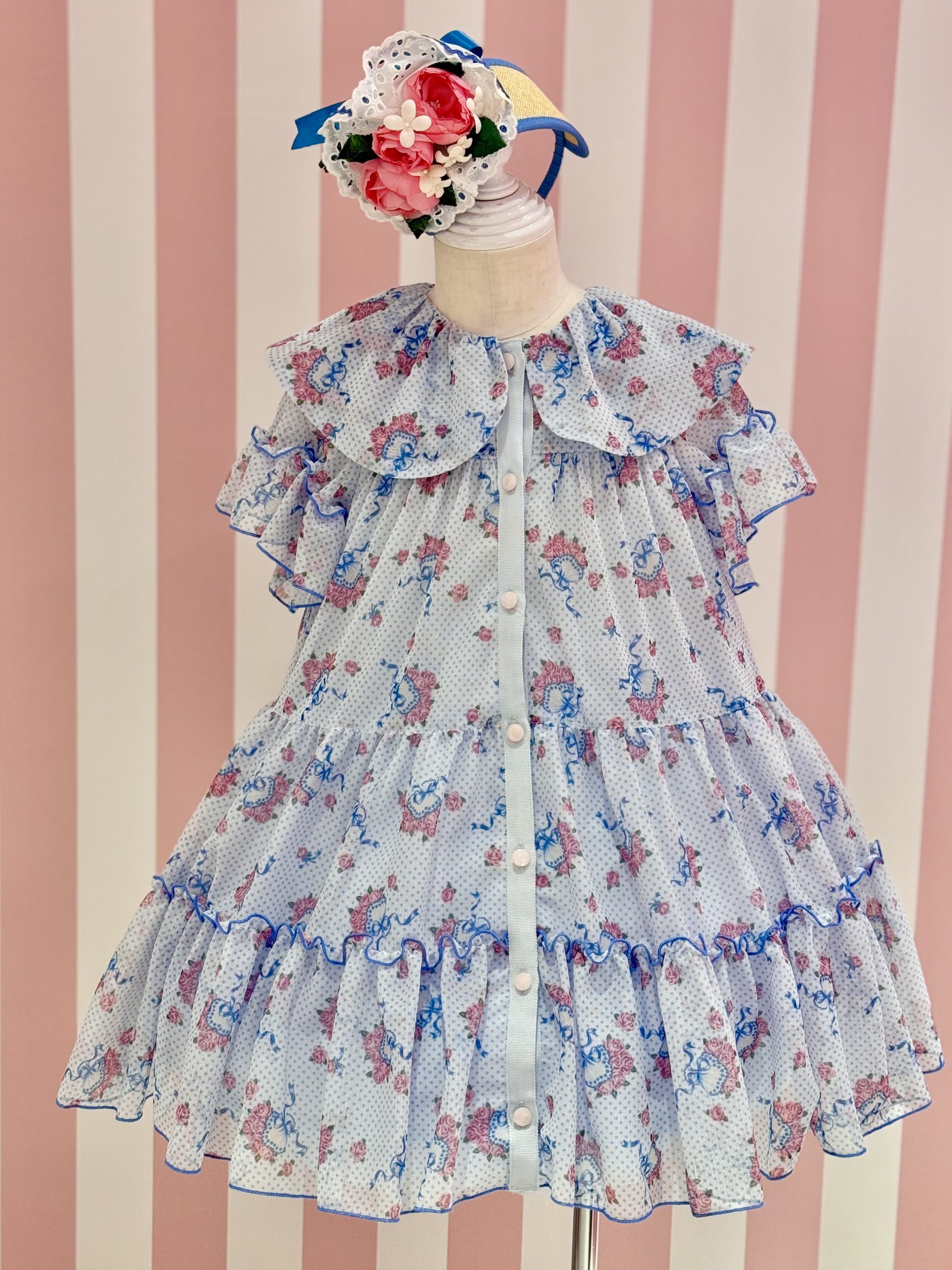 カラーはサックスにはローズピンクのローズ×ブルードット![]()