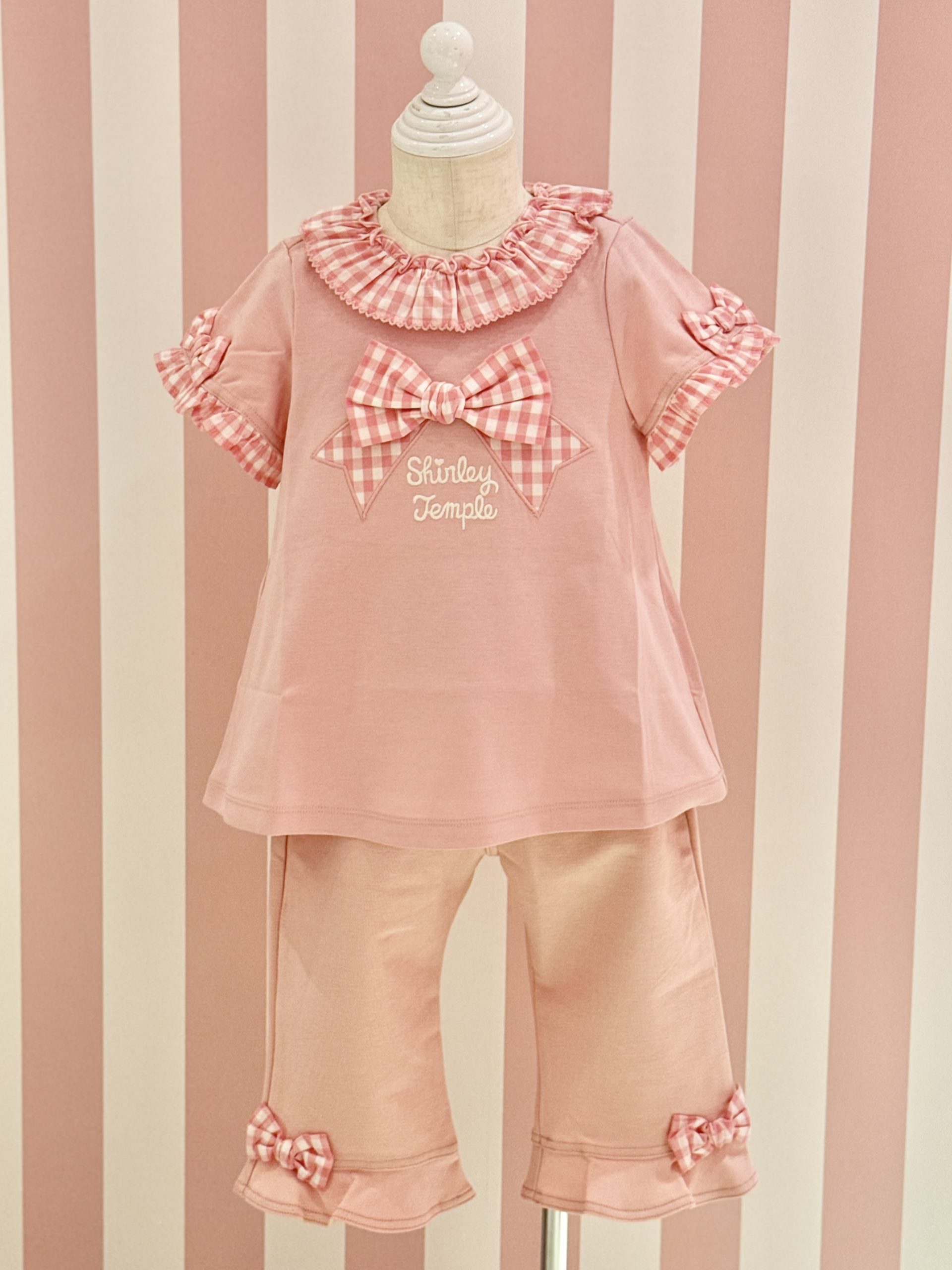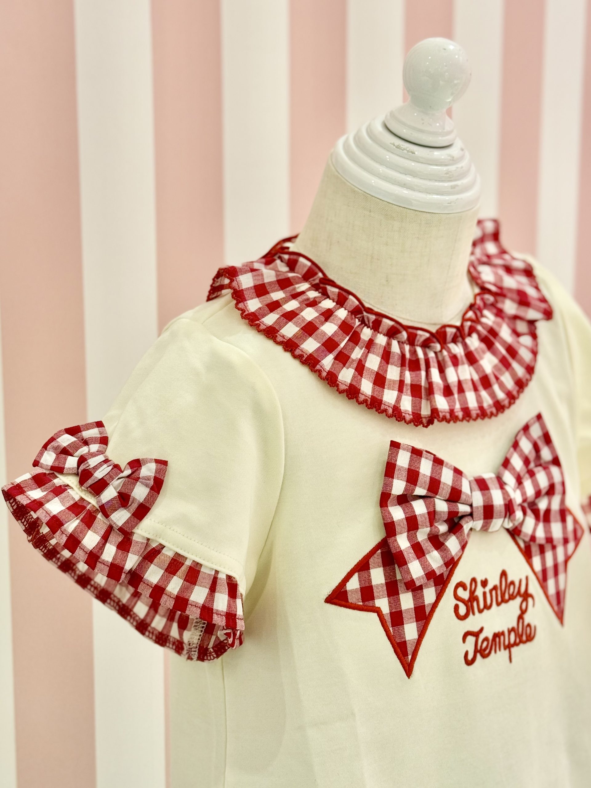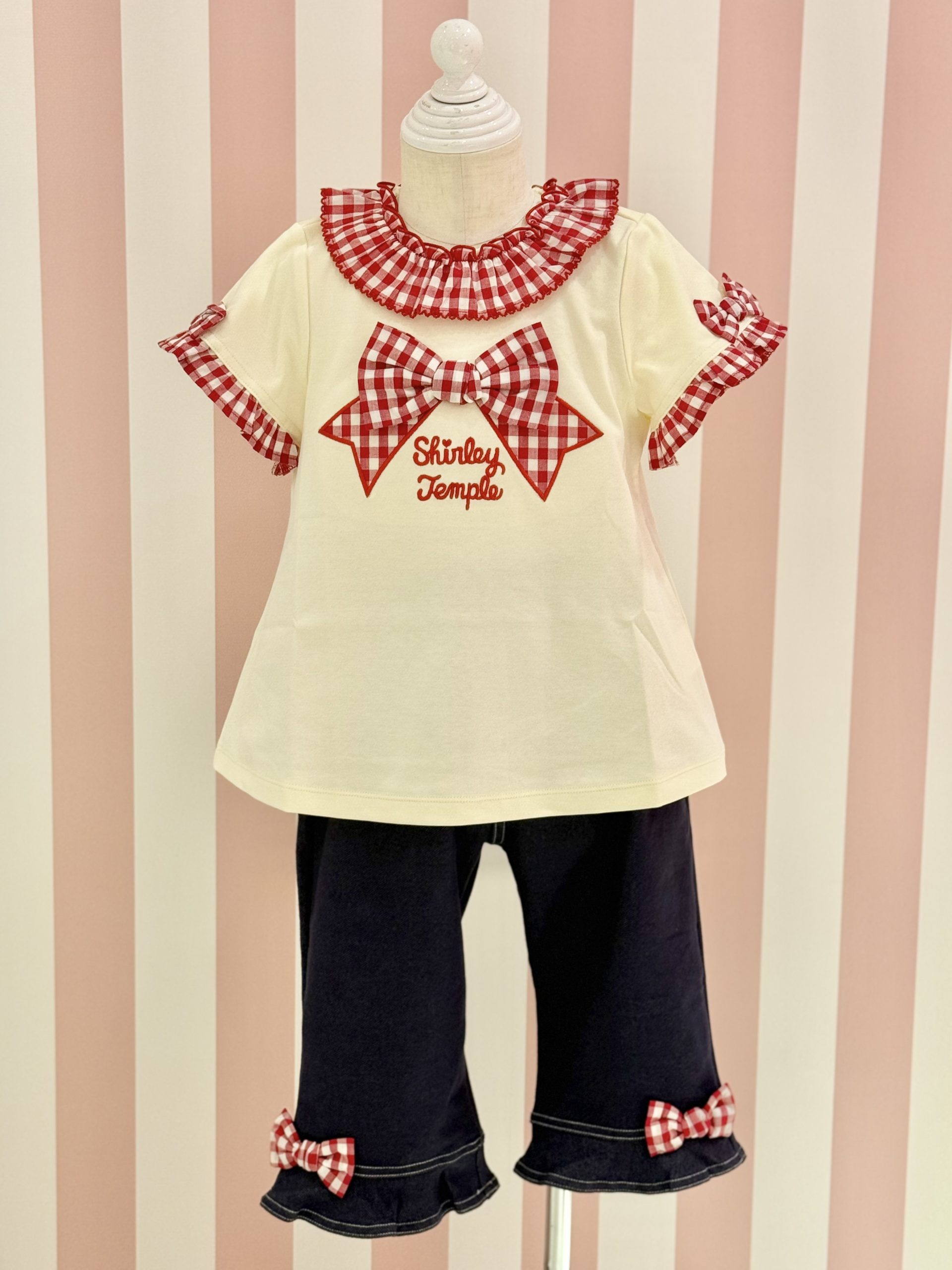 シャーリーテンプルの夏らしいギンガムチェックのTシャツにお揃いの
