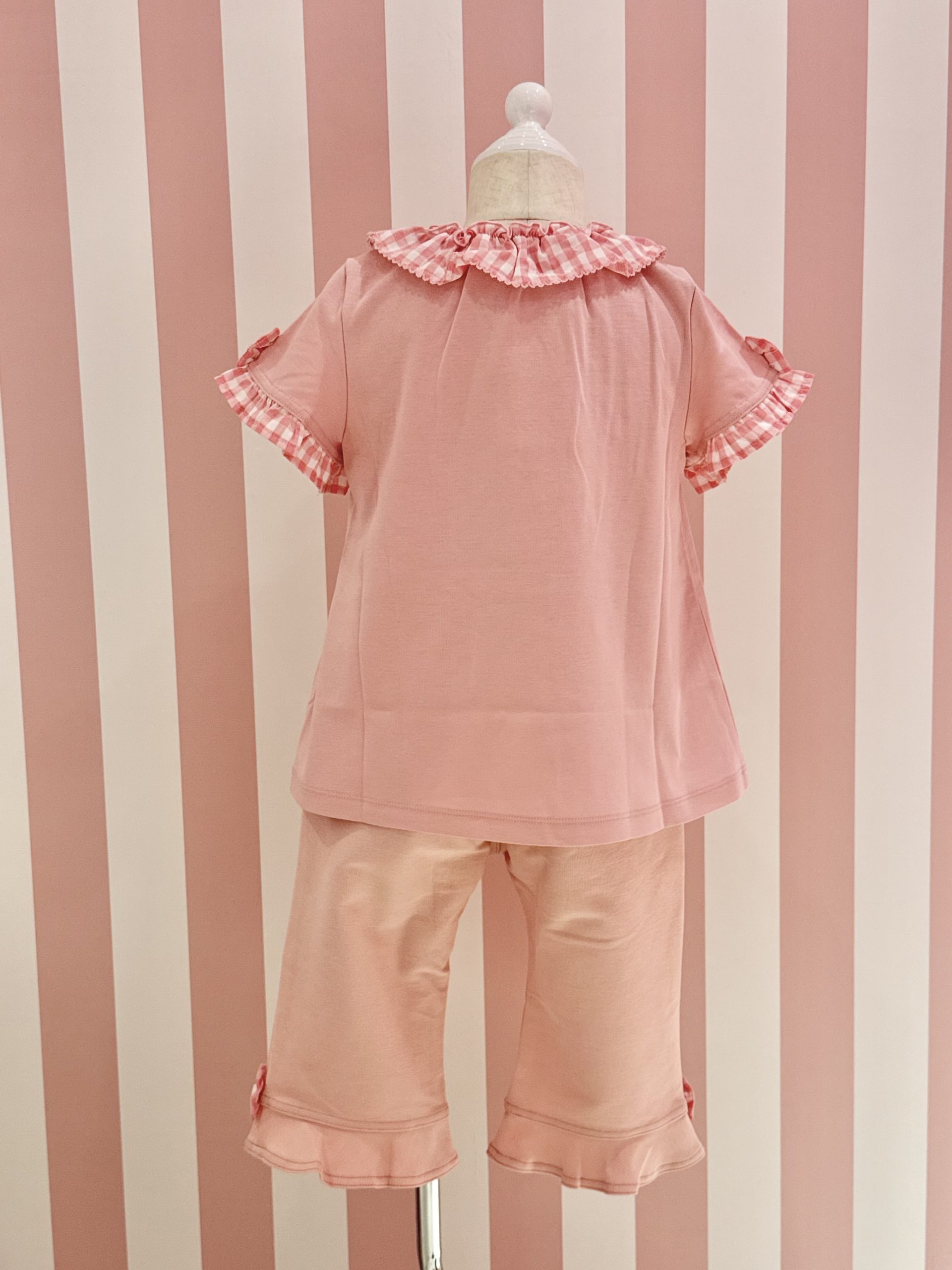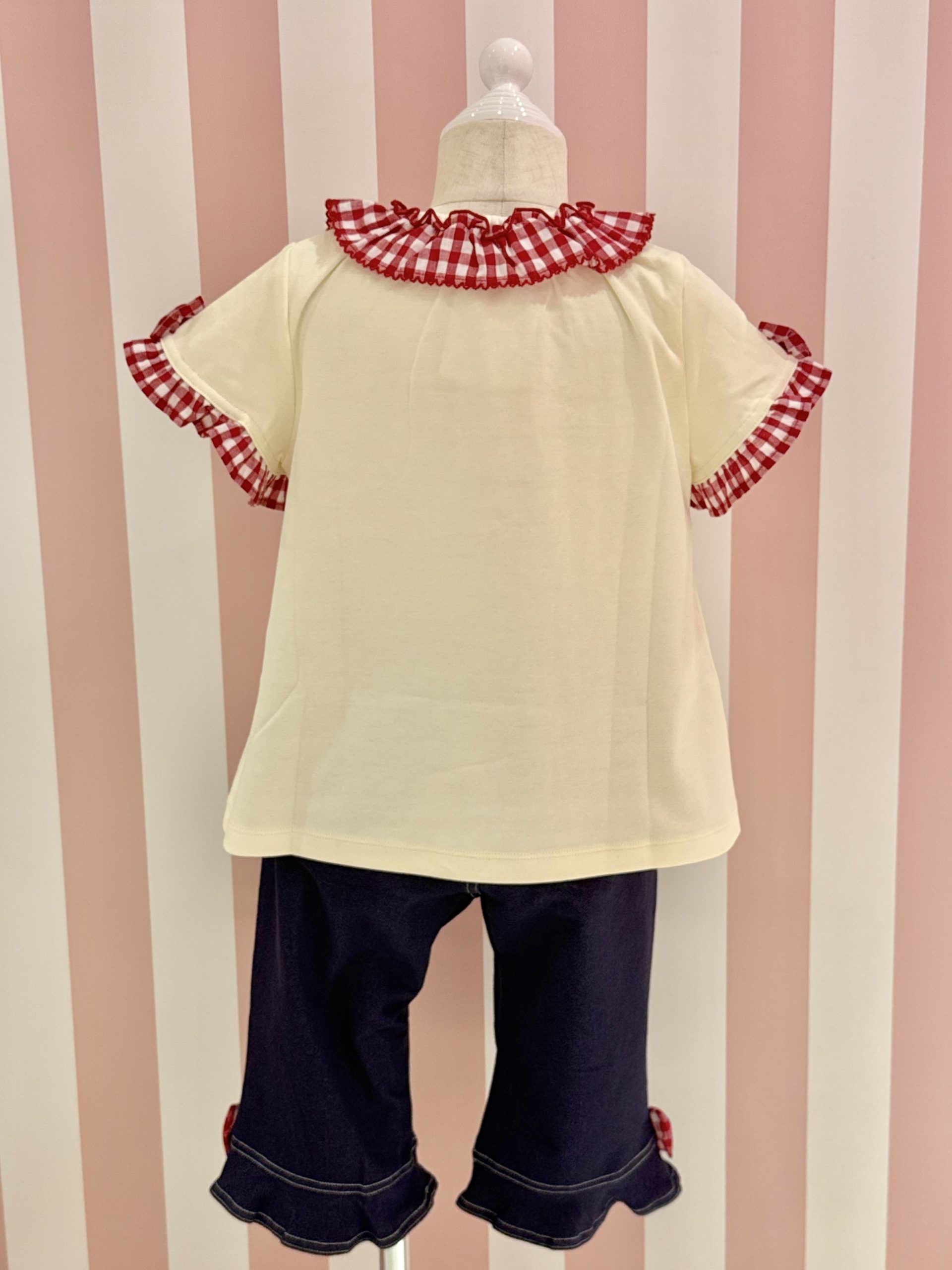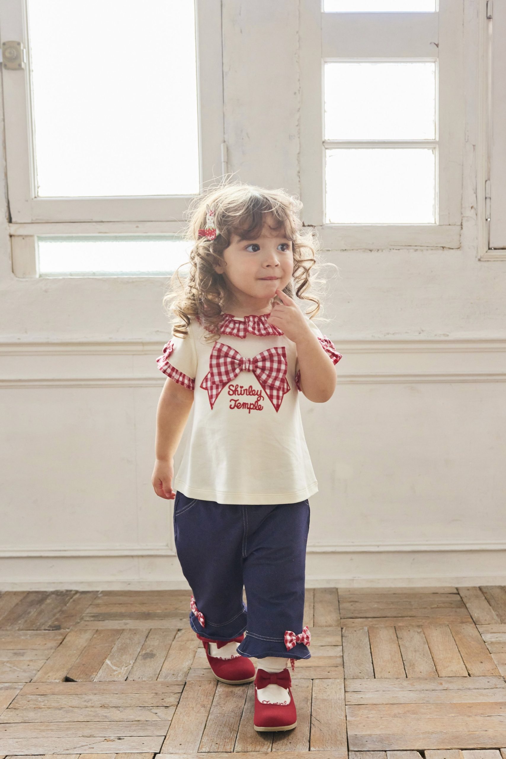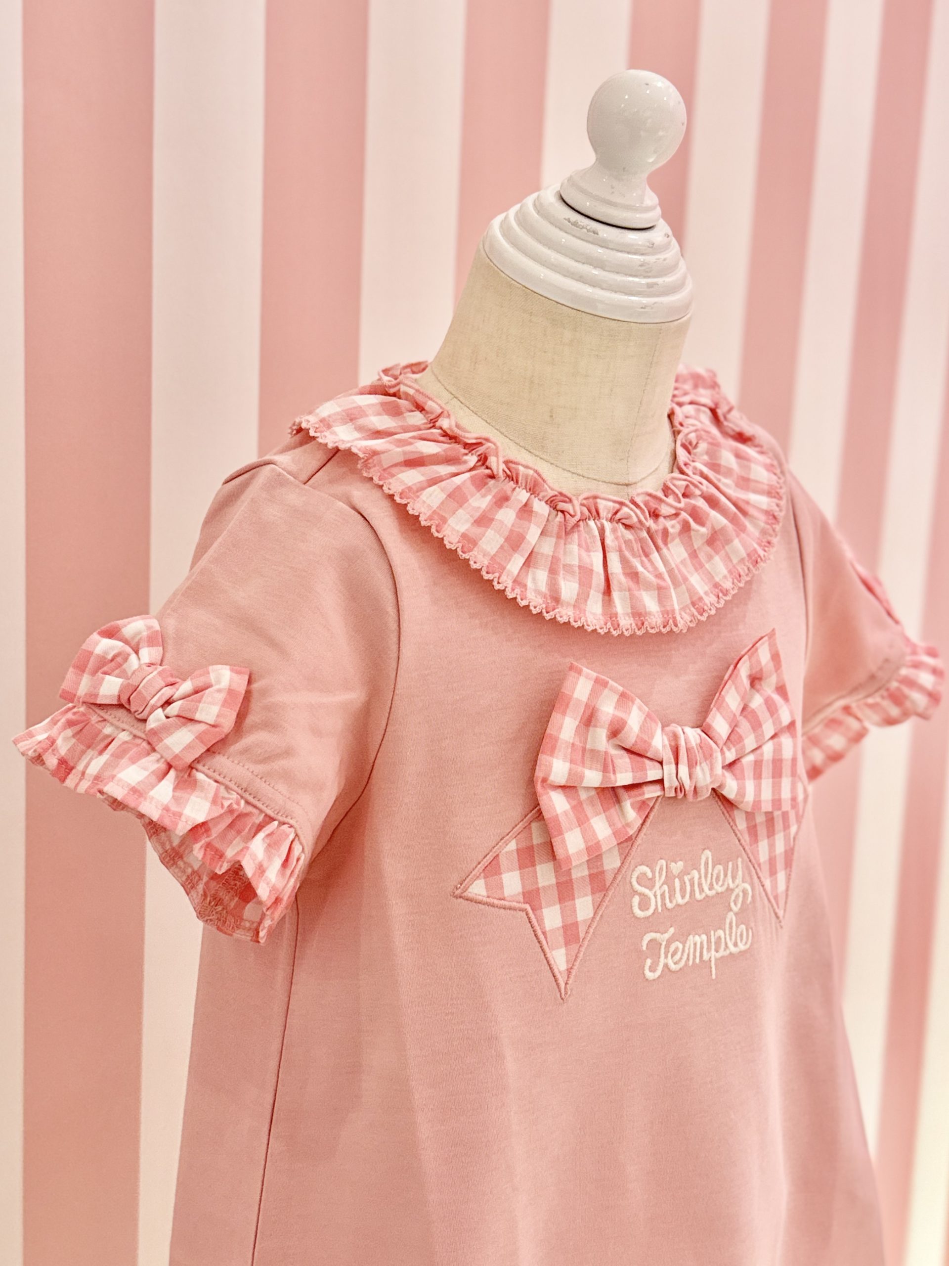 シャーリーテンプルの夏らしいギンガムチェックのTシャツにお揃いの