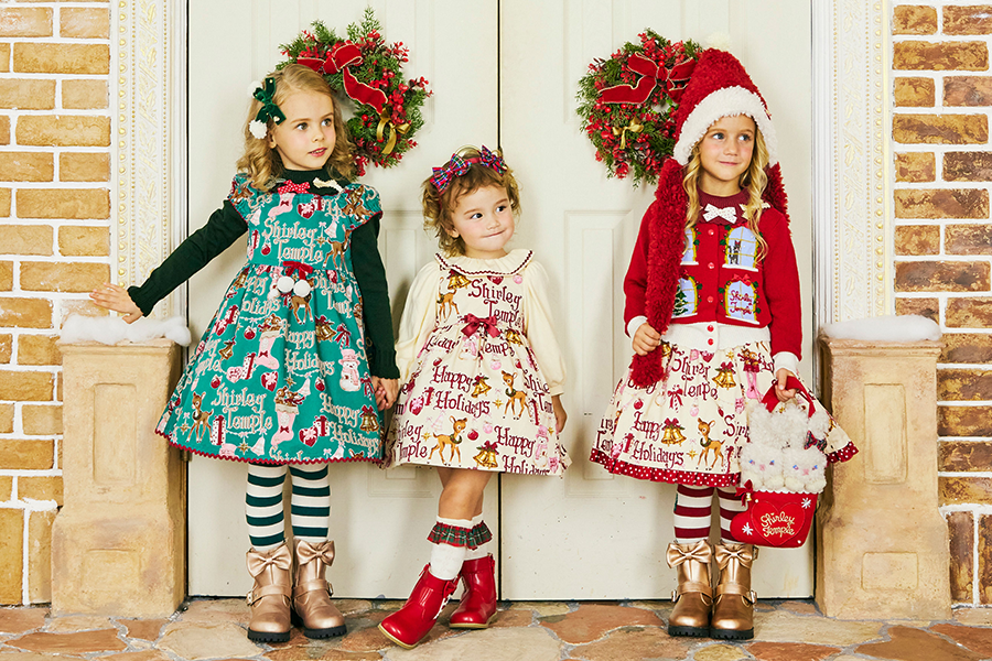 クリスマスのイメージをシャーリーテンプル らしい甘いモチーフで表現した“ハッピーホリデー”プリント。