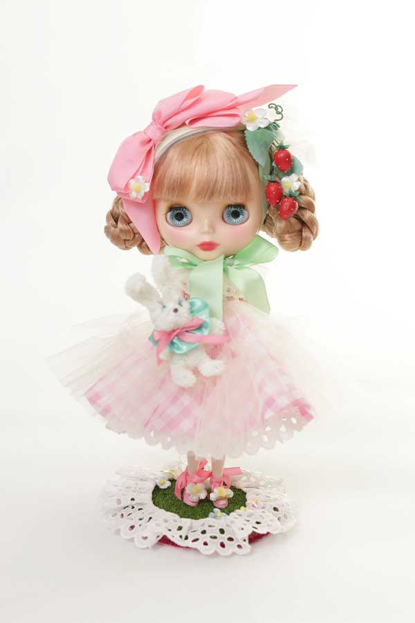 いちごモチーフとおめかししたおともだちのバニーちゃん。